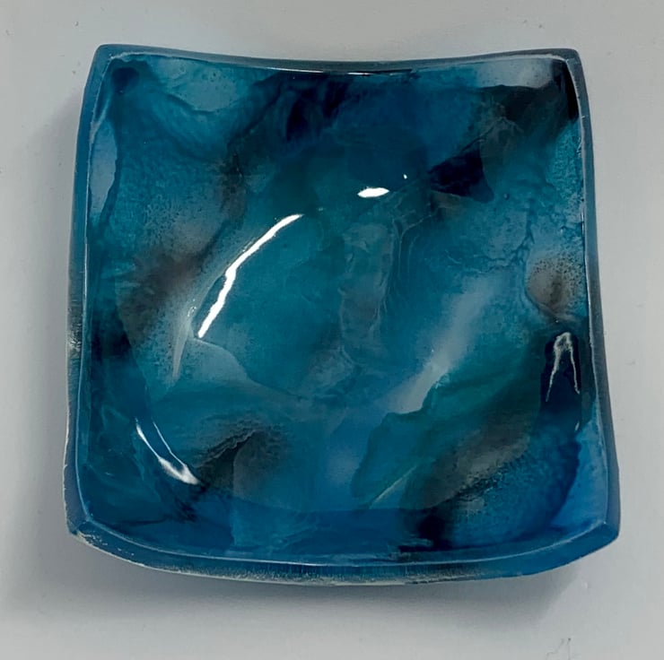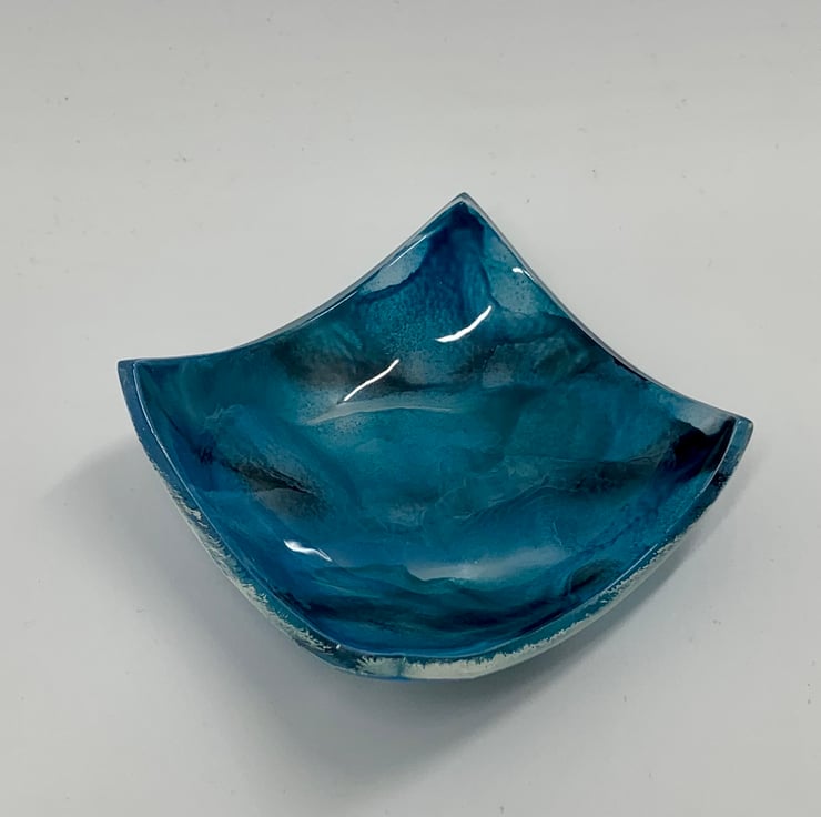 A pretty little fused glass trinket dish with hand painted glass enamel design. This was hand crafted by myself and fused in my glass kiln.