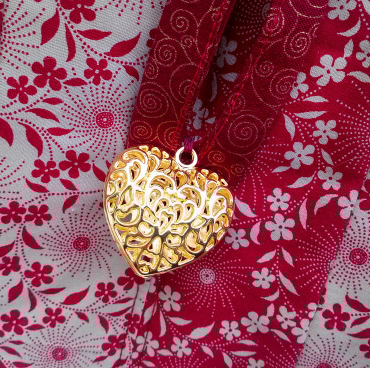 It is wadded for a soft feel, and the loop closes the bag by wrapping around a lovely gold heart.