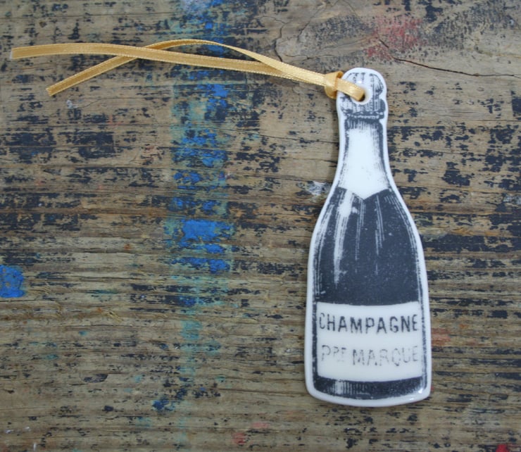 Porcelain champagne bottle decoration