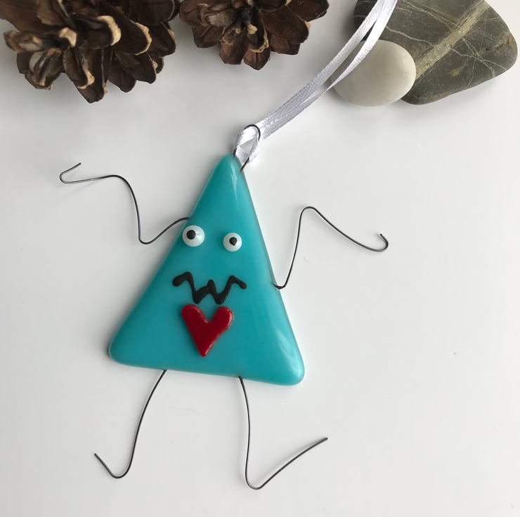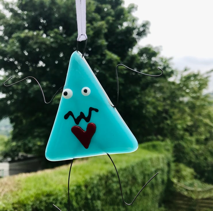 This fun wire and fused glass hug monster is made by me in my yorkshire studio. It would look fabulous In a window, on a wall or even hanging on the tree branch during the summer. It would make a lovely small gift for a friend or family member who you want to let know you are thinking of them.
