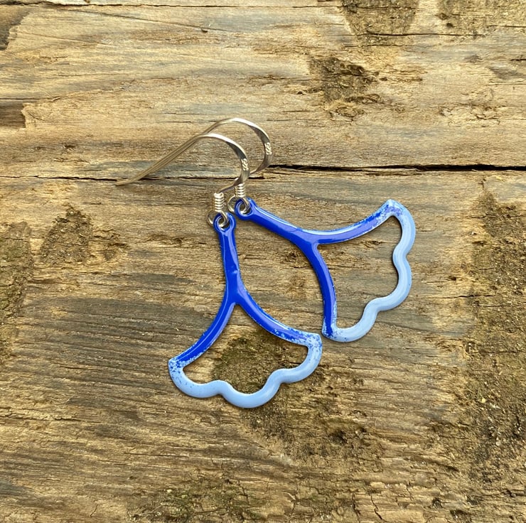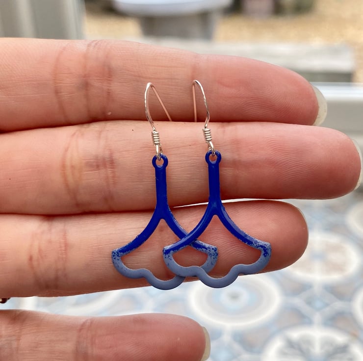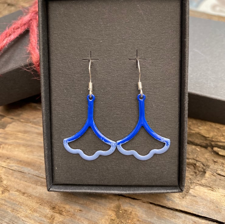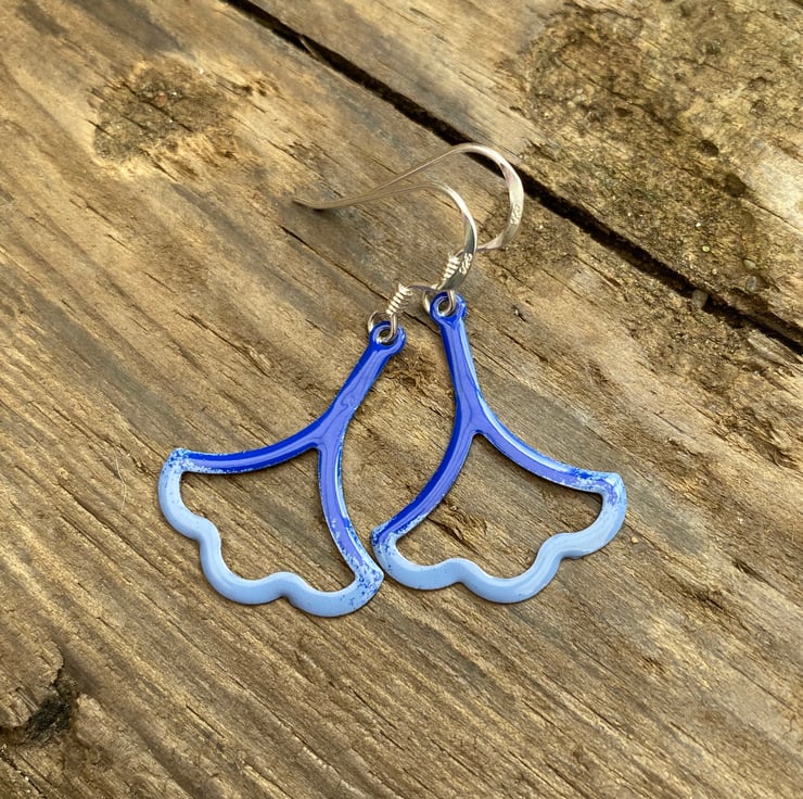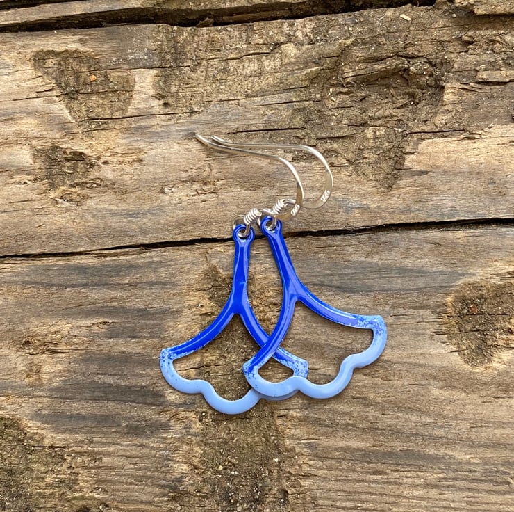 Two Tone Blue Enamel Flower on Sterling Silver Earrings