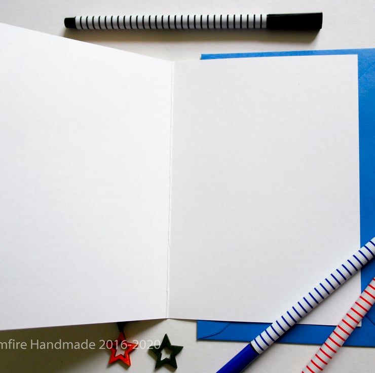 Each of our printed range of cards are hand drawn and designed on a drawing tablet and then printed on to high quality 255 GSM card stock from our UK suppliers who use responsibly managed forestry sources. Each Card is handmade (designed, printed, cut, creased, folded) and packaged by us in our little studio in Stamford, in the UK