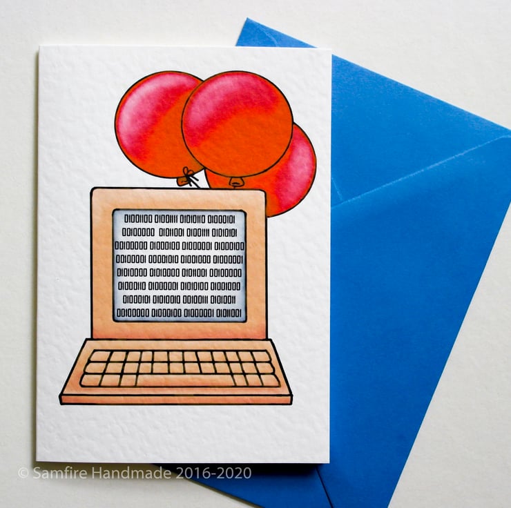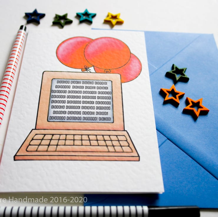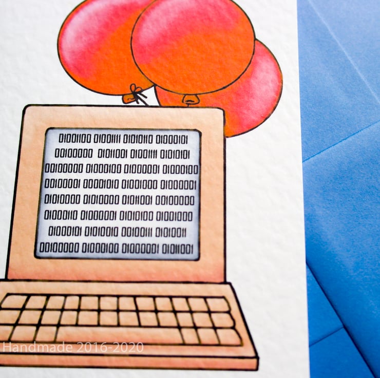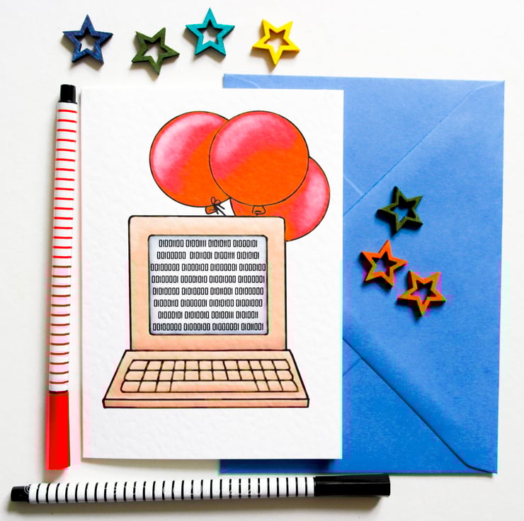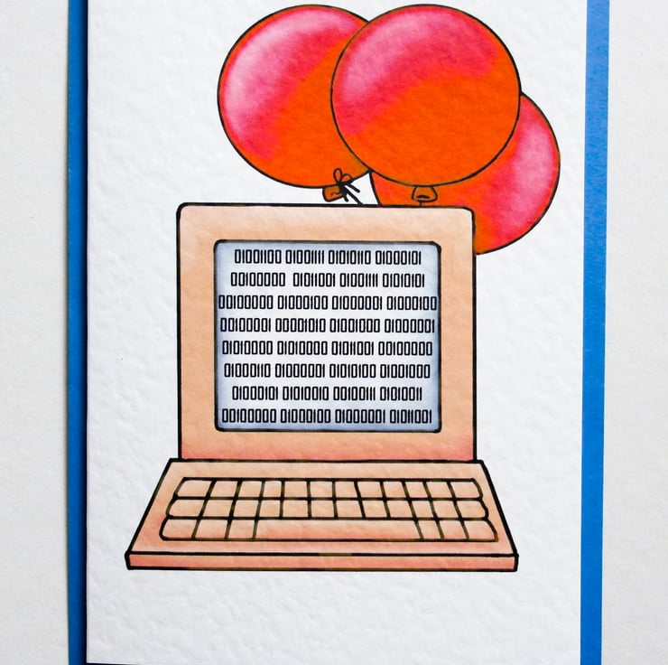 a Computer Screen with Binary code with YOU ARE THE GREATEST DAD EVER as the message, this is IDEAL for Father's Day and PERFECT to send to your Dad as a funny / cute / smart greeting for this Father's day TO SHOW HOW MUCH YOU LOVE YOUR DAD, with this unique handmade Printed card.