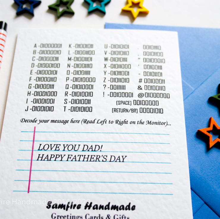Greeting on front: LOVE YOU DAD! HAPPY FATHER'S DAY (in Binary)