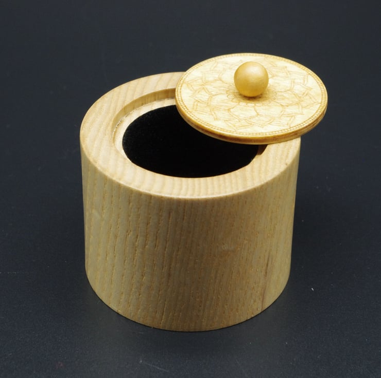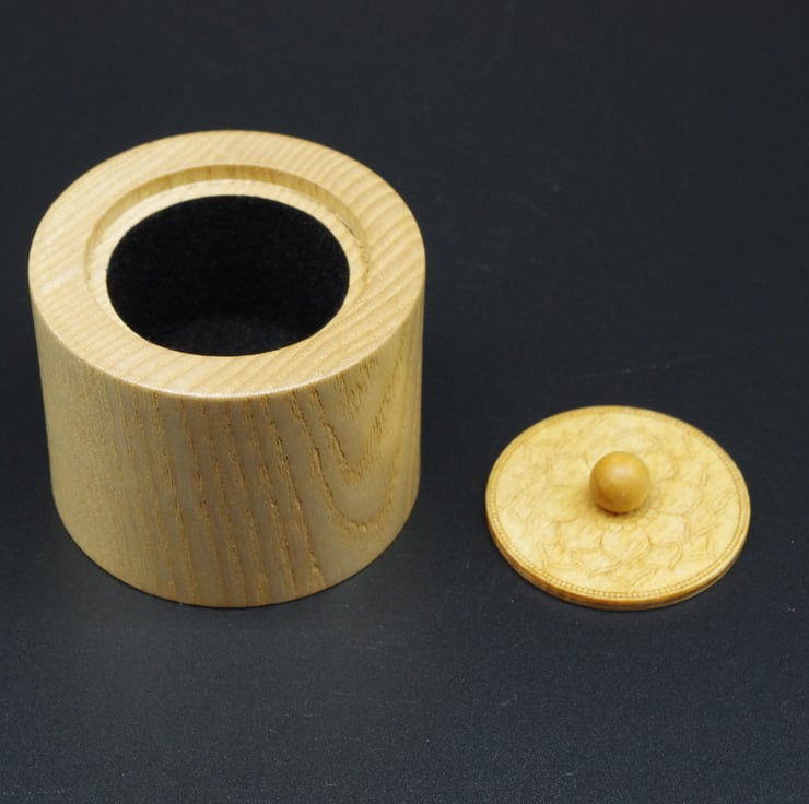 This delightful ring, trinket box is made from a piece of Scottish Ash.