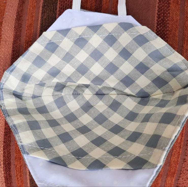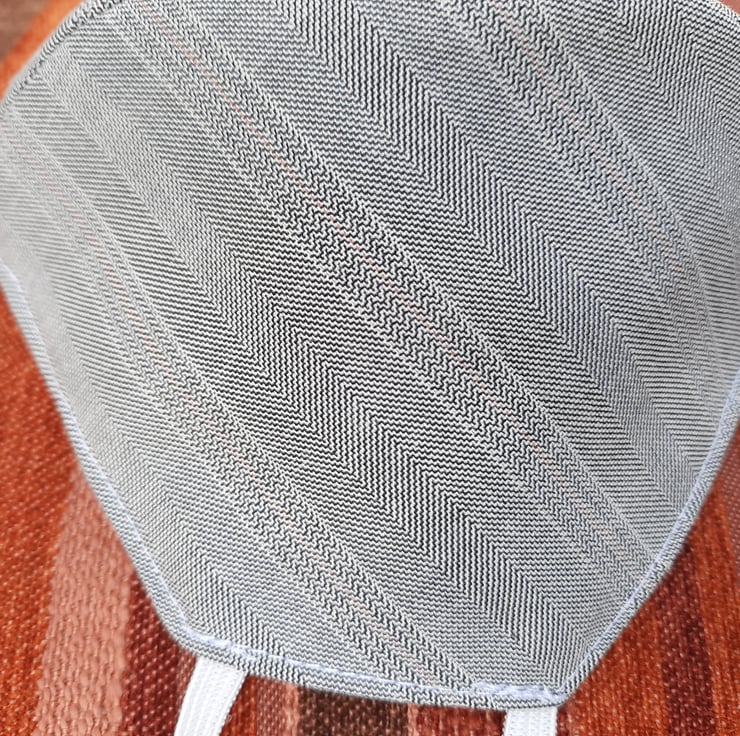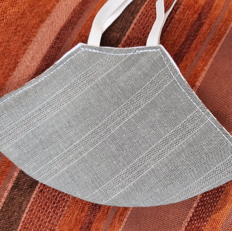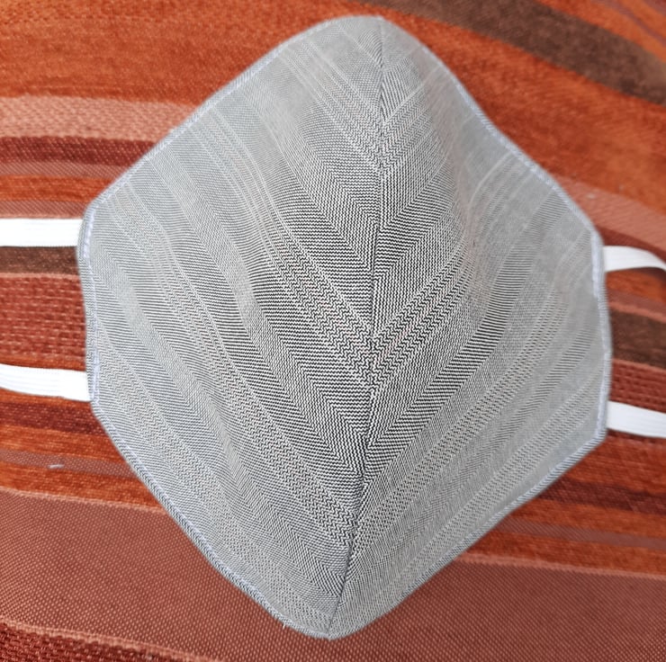 a great mask for more formal or office wear in a smart grey pinstripe - very stylish fully lined and with a pocket for a filter if desired (not included) this is a very stylish and practical facemask . Just the job for travelling on public transport or where social distancing is not possible - this is not a medical grade mask but an environmentally friendly washable and reusable handmade facemask.