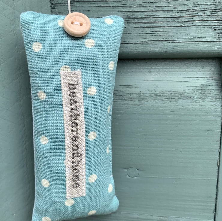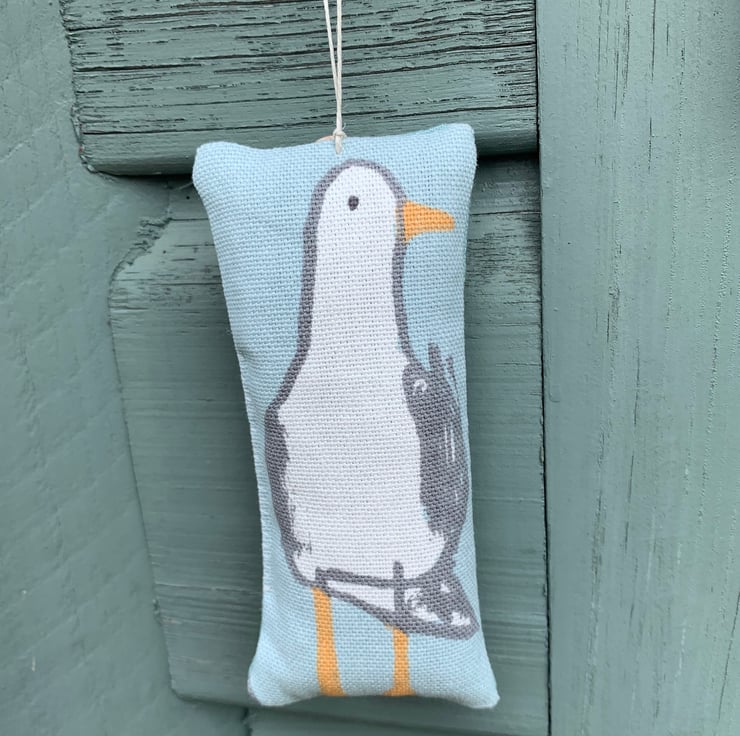 Featuring a full-length seagull on a gull-egg blue background on one side and white and gull-egg blue polka dots on the reverse, filled with relaxing and fragrant lavender and finished with a rustic wooden button... this seagull decoration will add a hint of coastal style to your home, whether or not you live beside the sea.