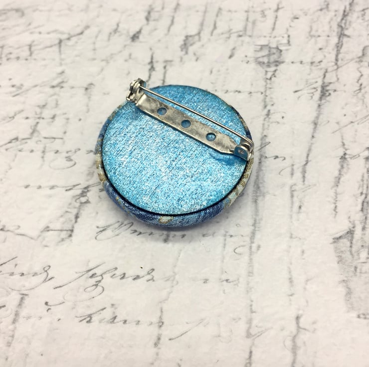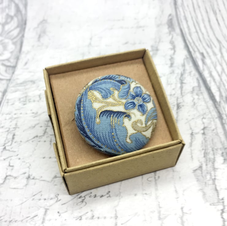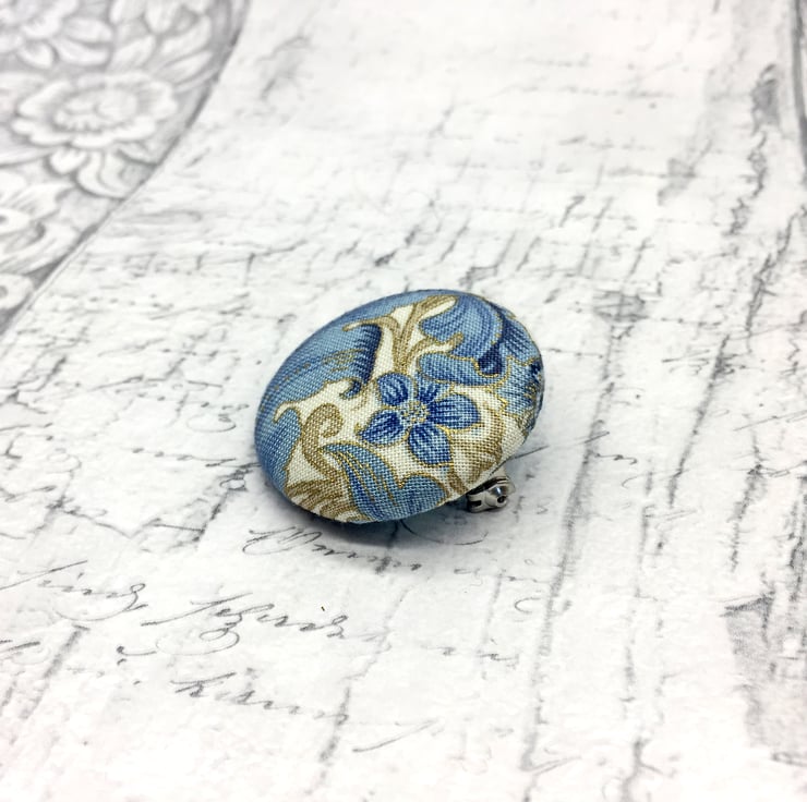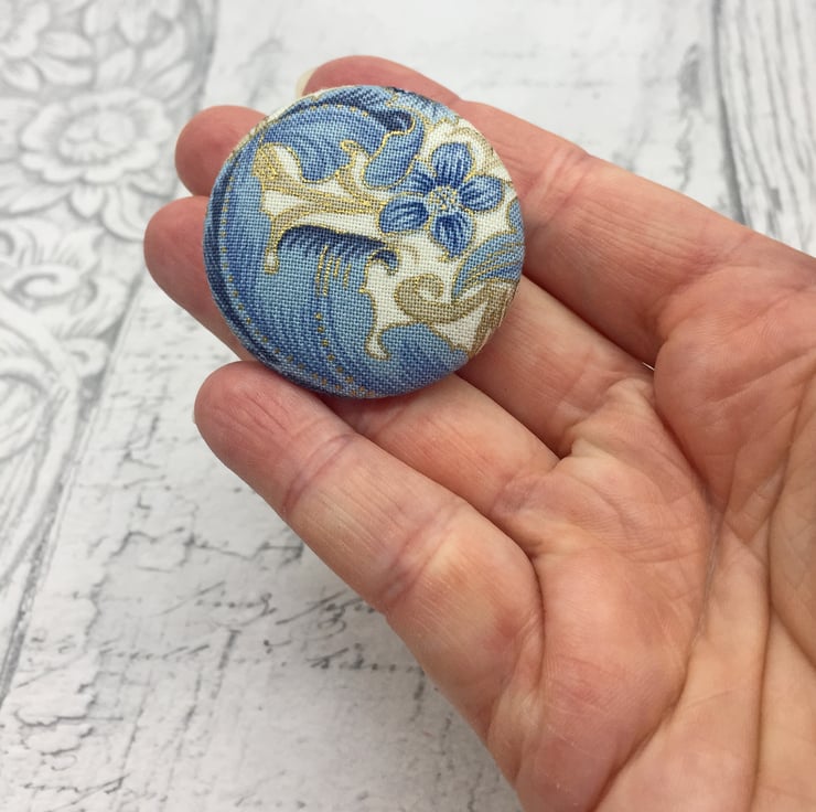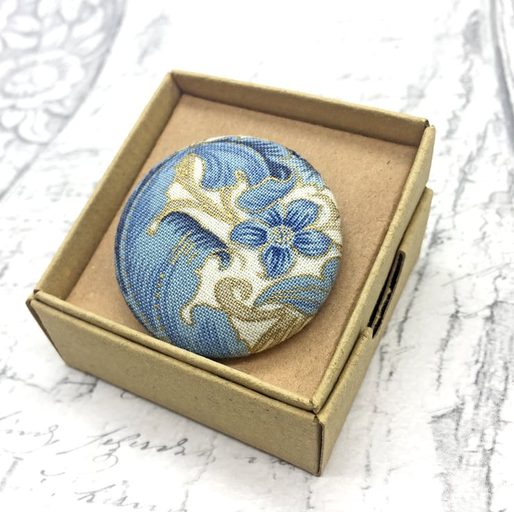 This William Morris & Co inspired blue swirling leaves and flower brooch is made using a beautiful cotton fabric from Moda in collaboration with the Victoria and Albert Museum, recreating some of William Morris's patterns into fabrics.