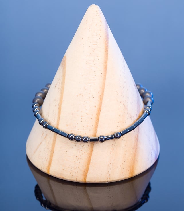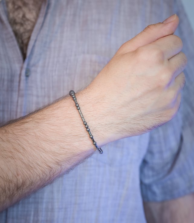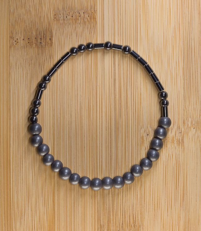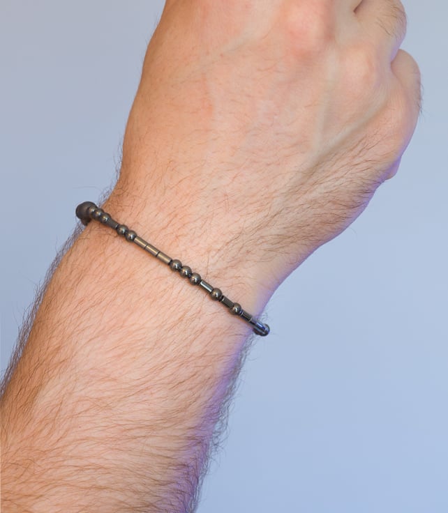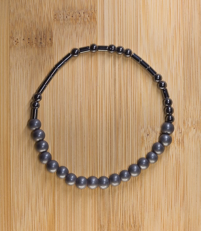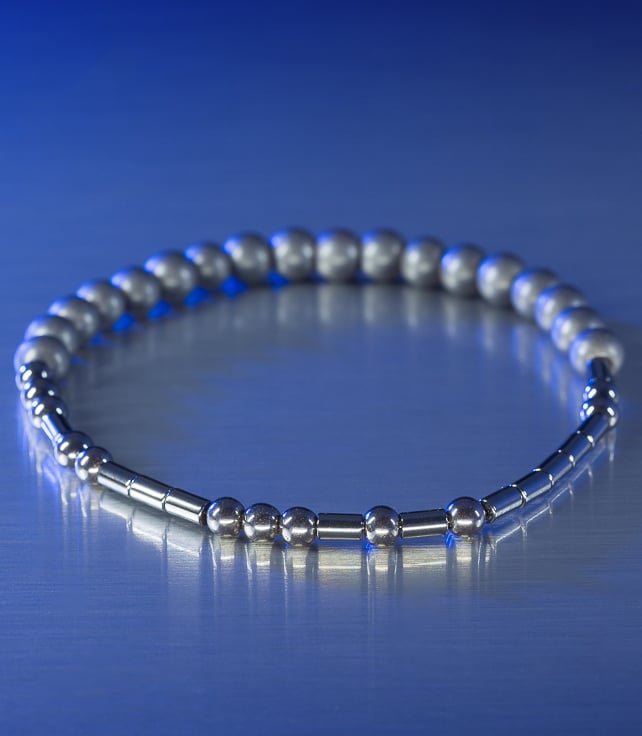 With jeweller's elastic (to slip over the wrist, no clasp).