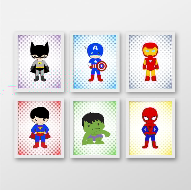 Superheroes nursery prints, superheroes boy's room wall decor