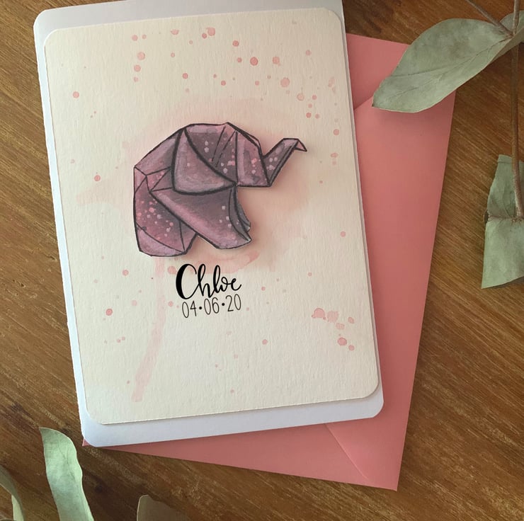 Handmade card using recycled materials to celebrate the birthday of a new baby girl. This card is approx 6x4 which then can be framed at this size as a keepsake in the nursery. Blank inside for your own message and comes with a recycled pink envelope.