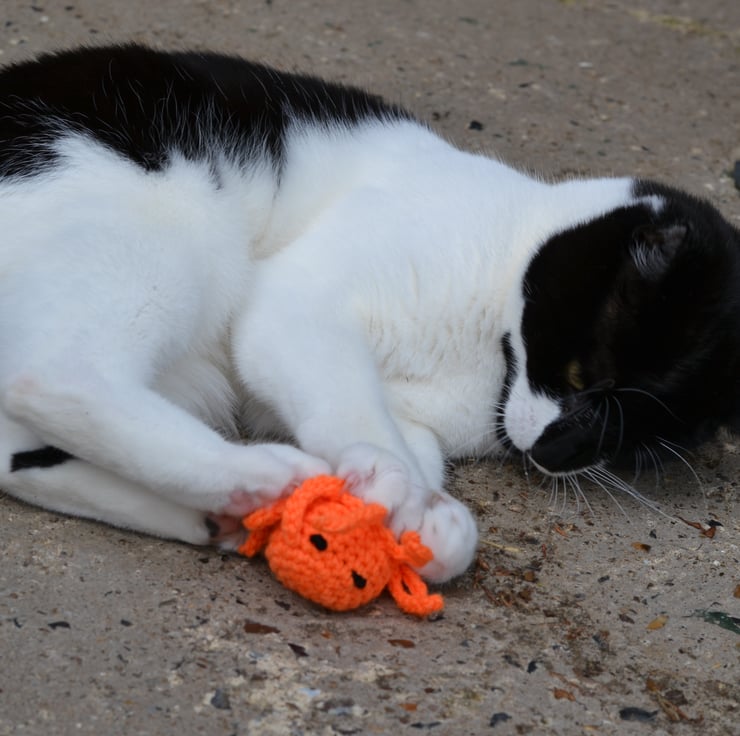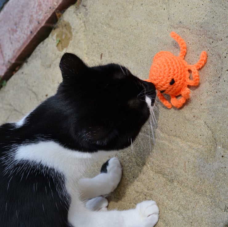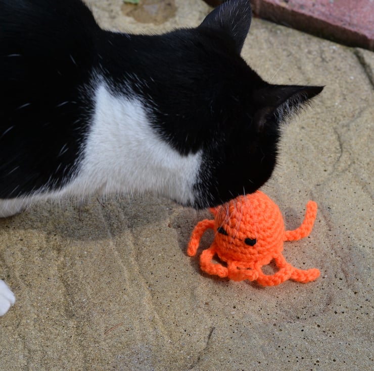 Hand crochet octopus with 2 options for you to choose how it is finished.