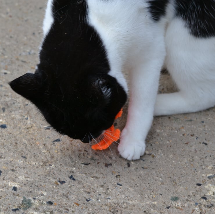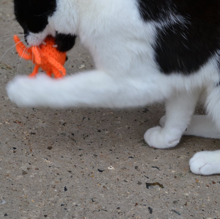 Check each day for any sign of holes, especially if you have a cat that is rough with it's toys.