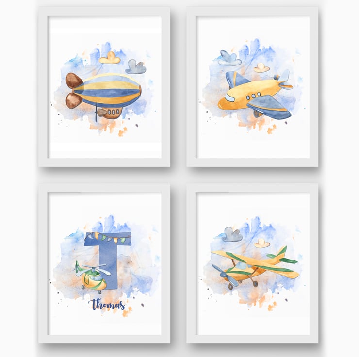 Airplane nursery prints, Air transport wall decor, watercolour plane prints