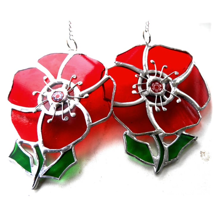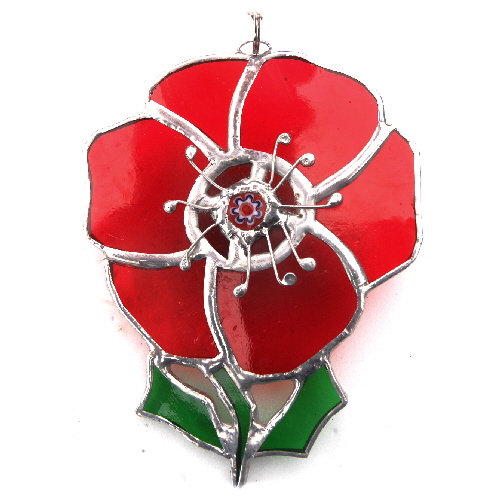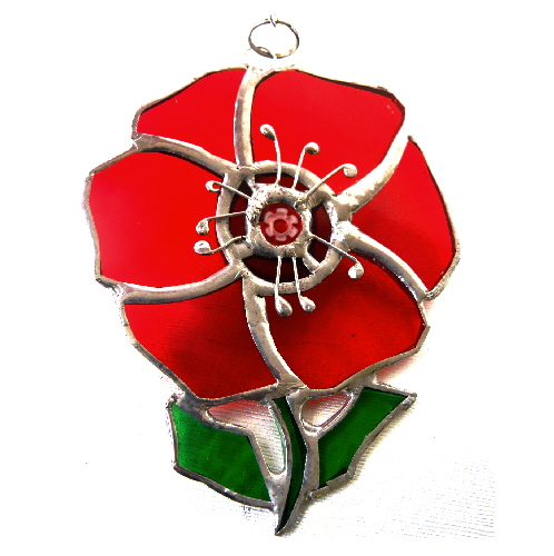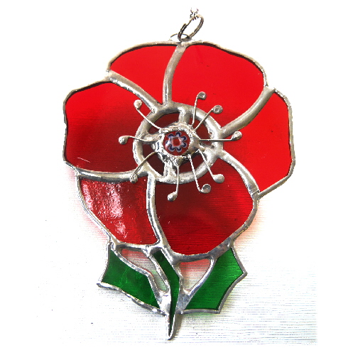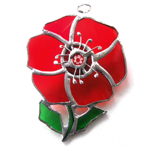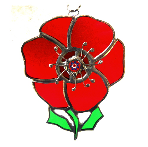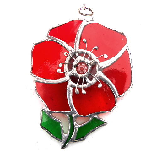 This is one of my favourite designs - a poppy - a stained glass suncatcher made using the Tiffany copper foil technique.