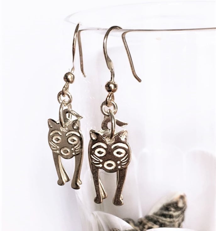 Gifts for CAT lovers - 925 sterling Silver hand cast Cat Design Earrings -minimalist jewelry