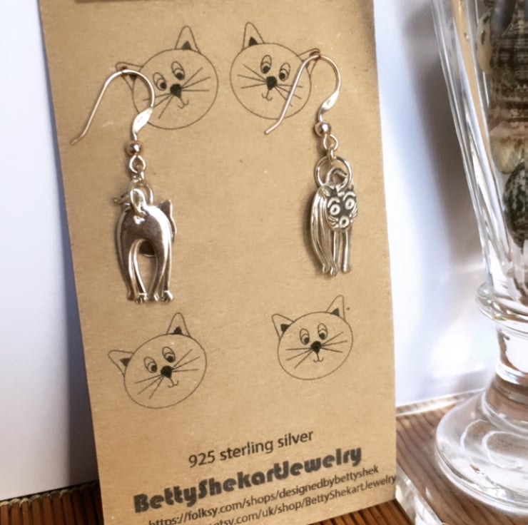 Size of cat earrings – approx 10 mm width / 41 mm total length