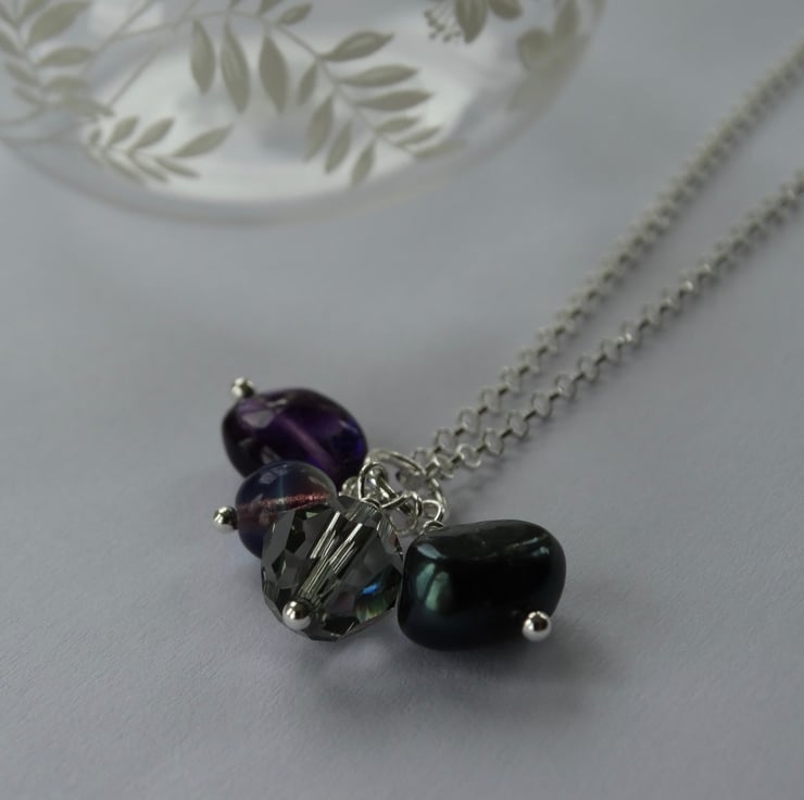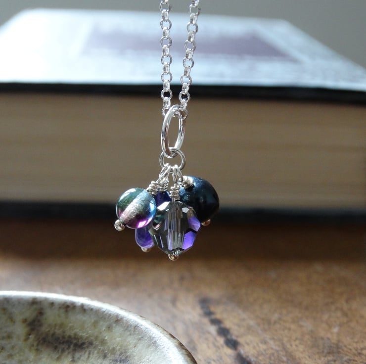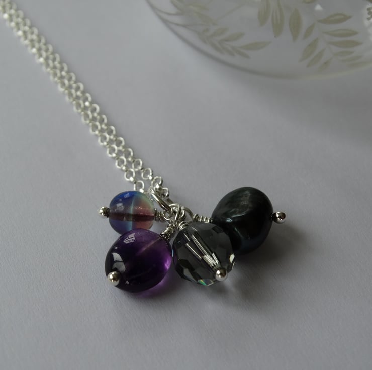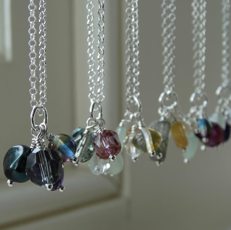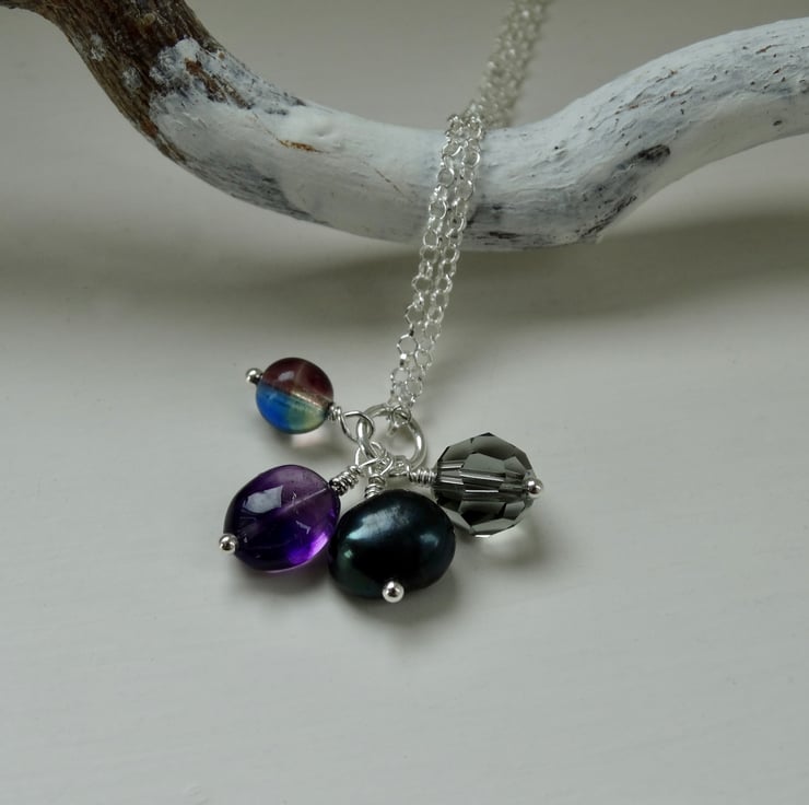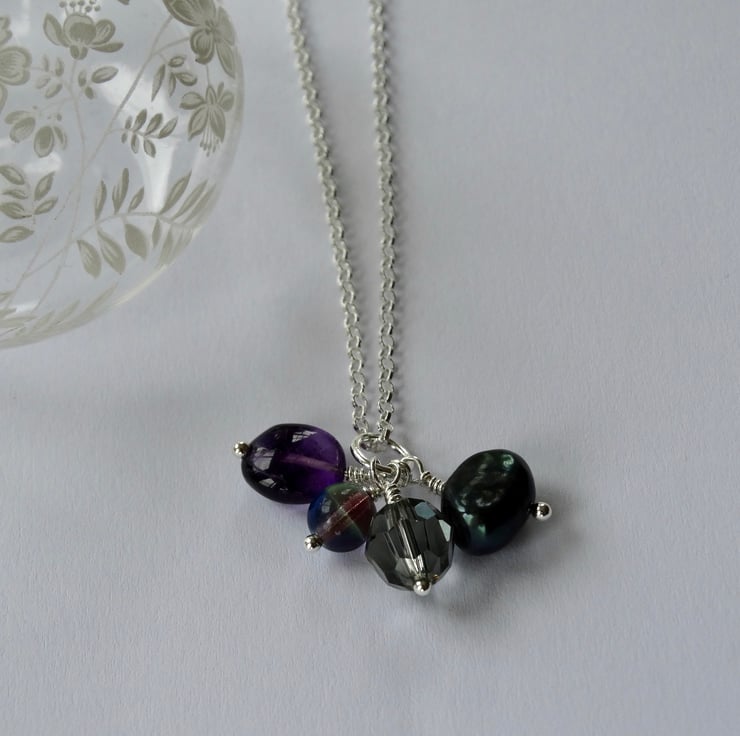 This little charm cluster pendant features a selection of little bead charms in colours inspired by the brooding clouds of a stormy sky in high summer.
