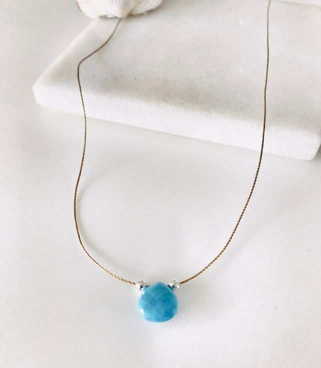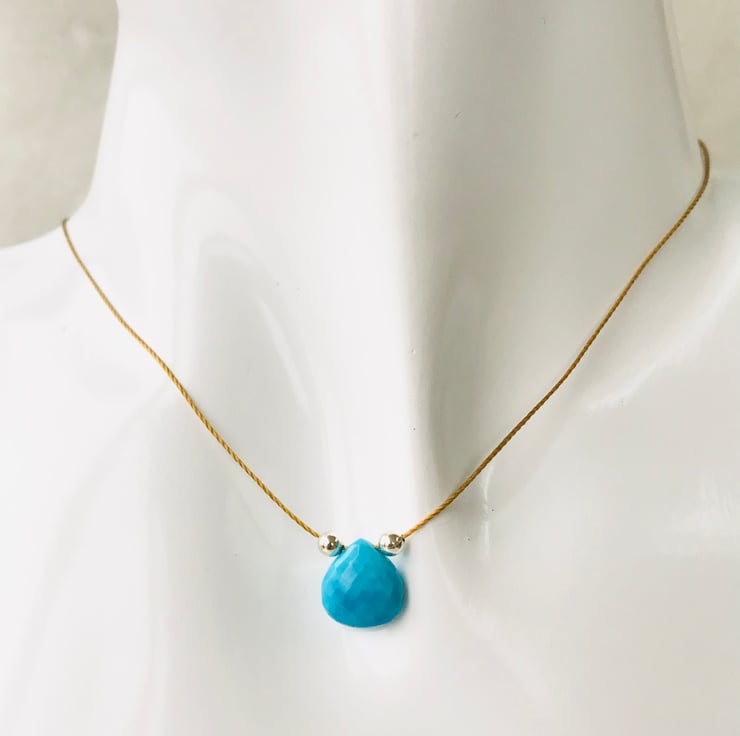 Turquoise faceted heart briolette gemstone necklace. This gorgeous gemstone is grade AA, approximately 10mm and is surrounded by 2 sterling silver round beads.