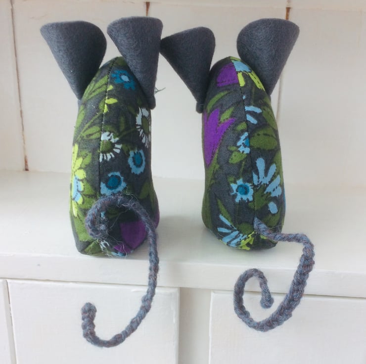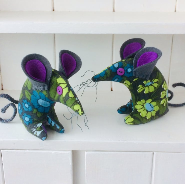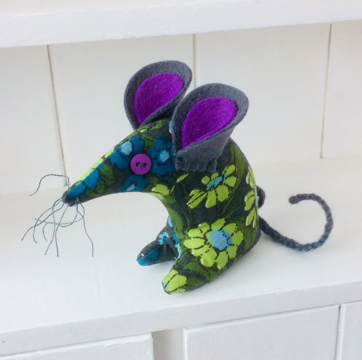 Mouse handmade by Wittydawn with 60s bold darker toned Daisy Chain Vintage Fabric - This is quite a rare version of this super fabric.