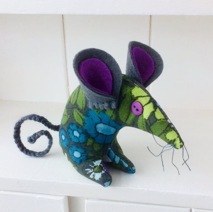 Retro 'tastic Mouse mouse has button eyes, felt ears and a plaited wool tail and cotton whiskers. He is approx 10cm tall from the tips of his toes to the top of his ears and approx 11cm from his nose to his bottom.