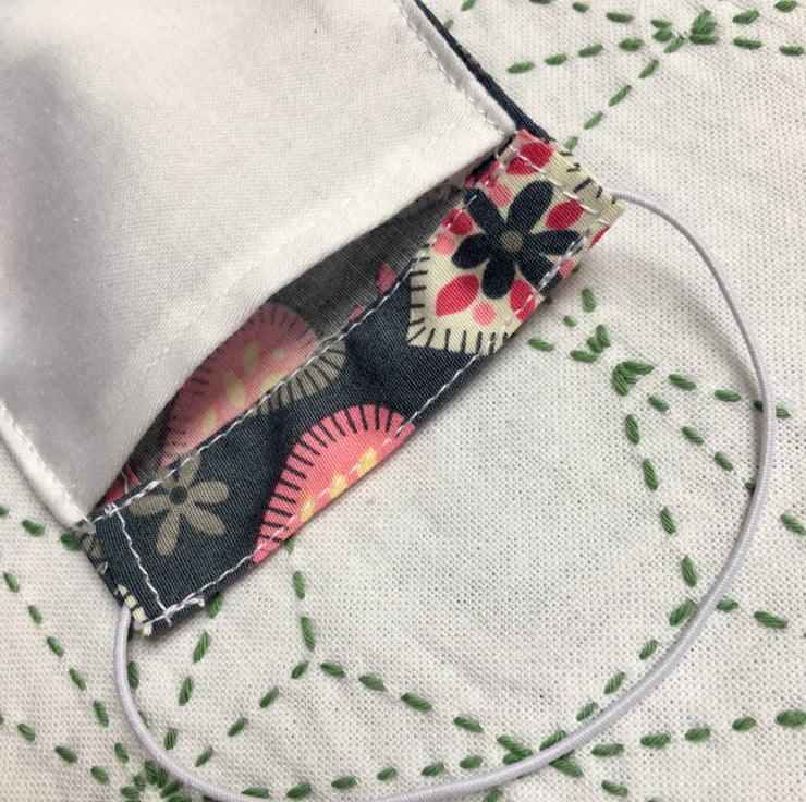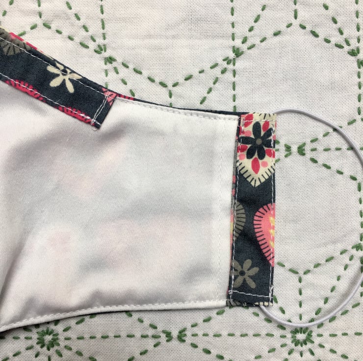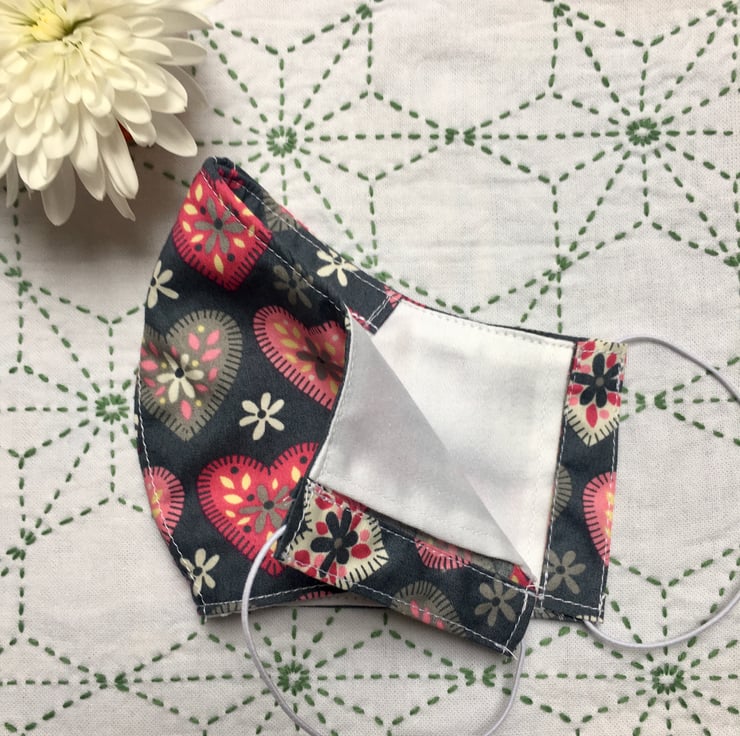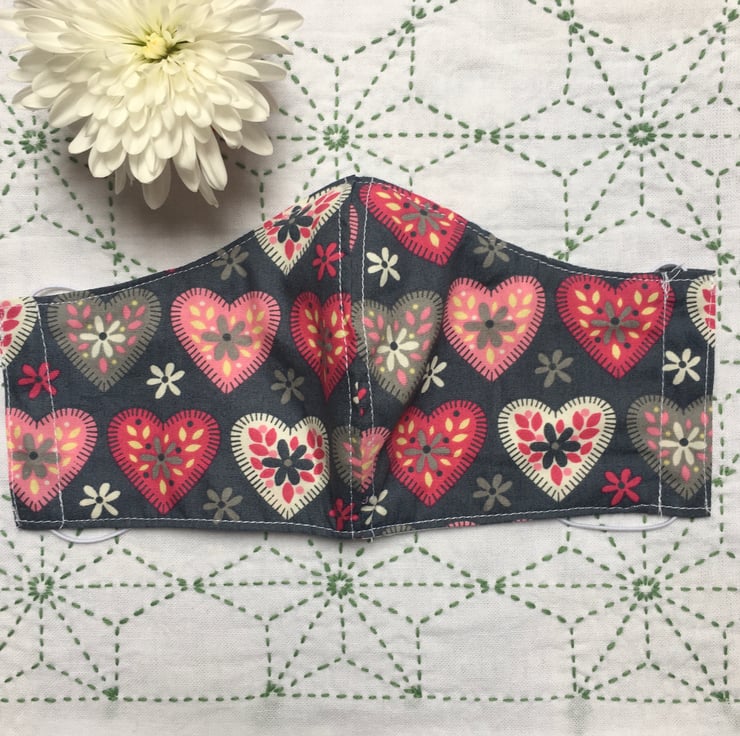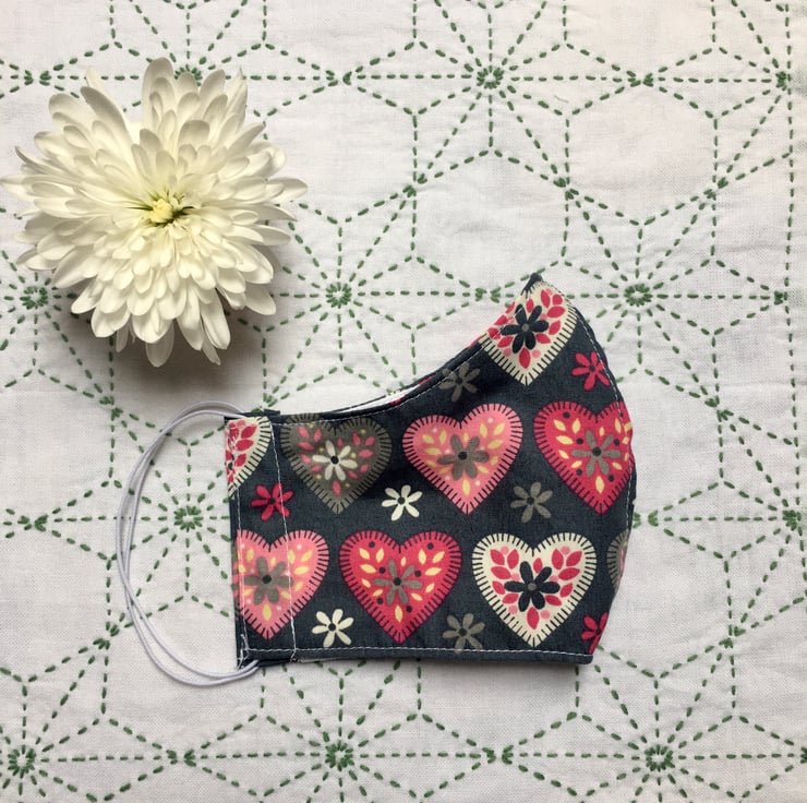 This is a pretty hearts mask in 100% quality cotton fabric, with a soft cotton lining.