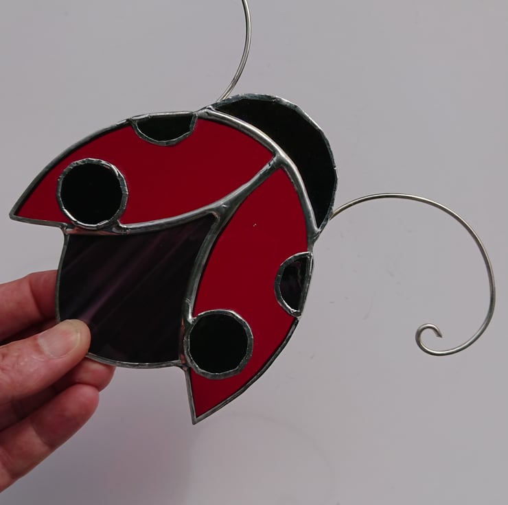The antenna are made from 2mm silver coloured wire, the ladybird can be hung from these so it faces either right or left.