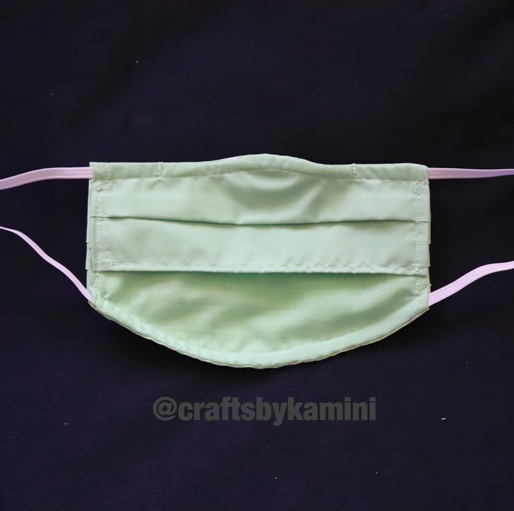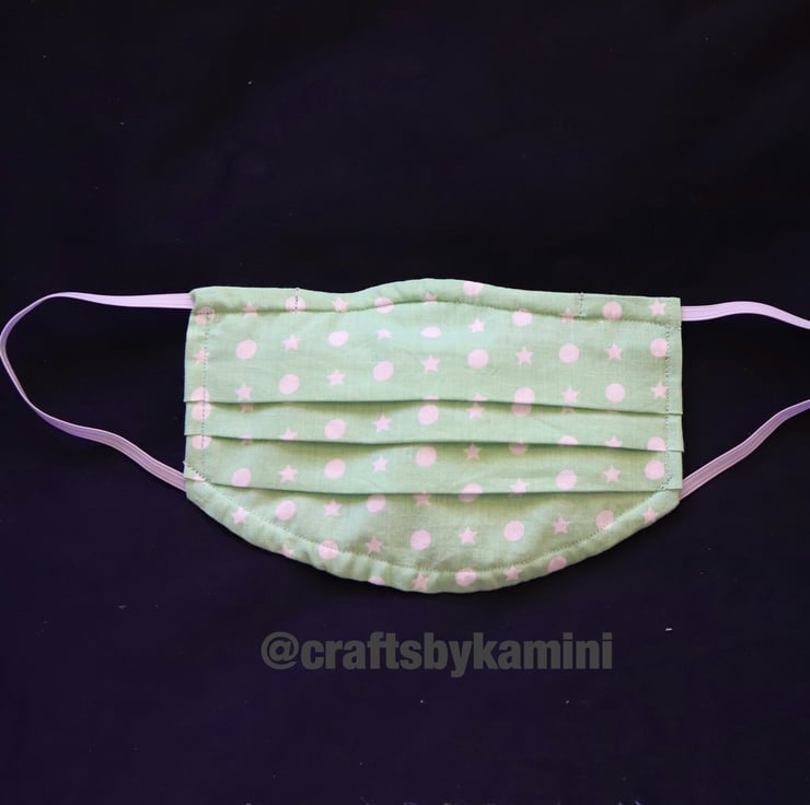 This face covering is made from 100% cotton spot and star patterned fabric, with a green back.