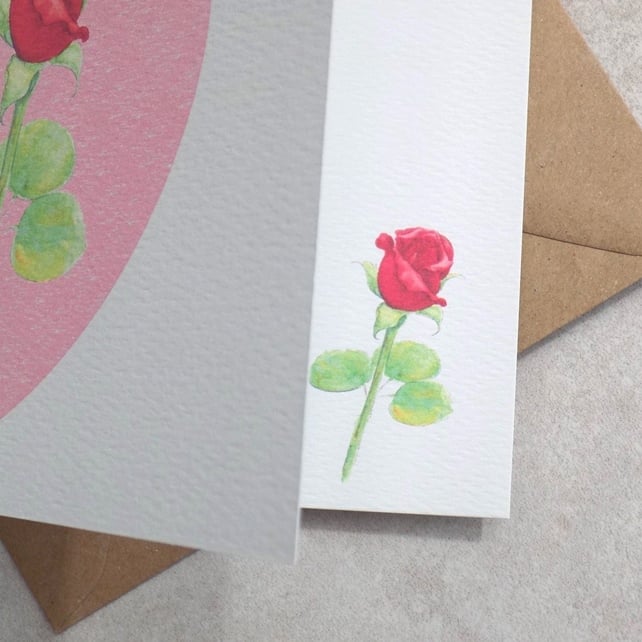 It has been printed with my own original red rose artwork and has been left blank inside for your own special Anniversary message.