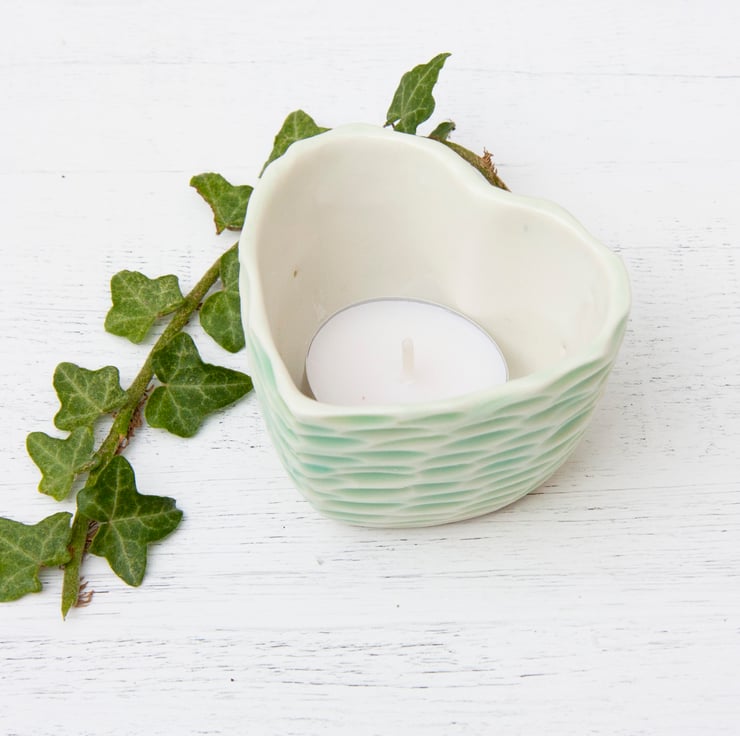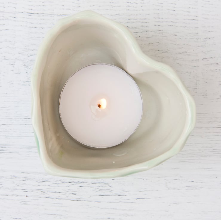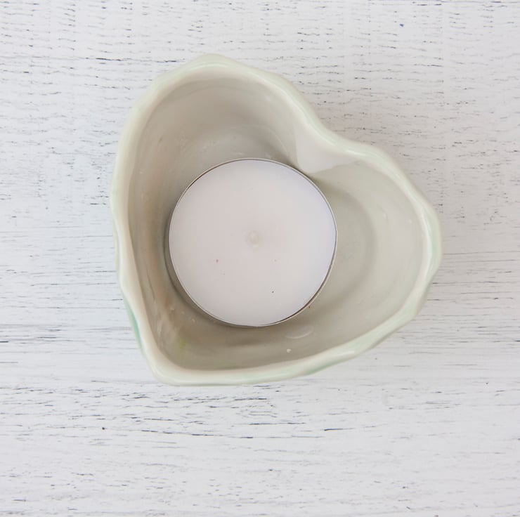 The hearts are glazed inside and out so that you can wipe out wax should you need to, and to reflect the shine of the tealight flame.