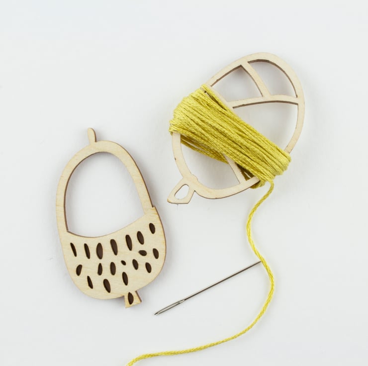 Keep all your cotton and wool threads orgnaised with my wooden thread holders, they match our fabrics and come in various collectable woodland shapes, including this acorn and pine cone designs. These pretty little organisers are made in the UK and support a small business like mine, they look amazing with our embroidery kits and other craft essentials.