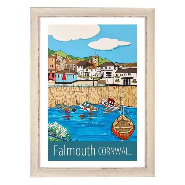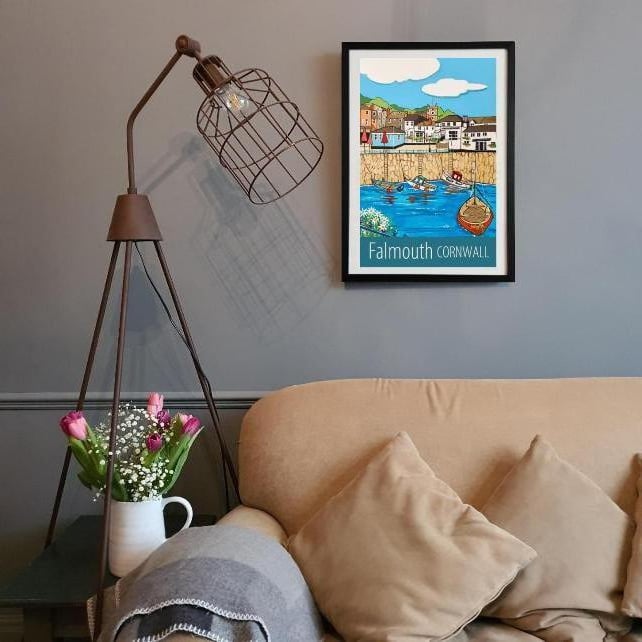 A contemporary travel poster style print of Falmouth, in Cornwall, and its lovely harbour from my own original acrylic painting.