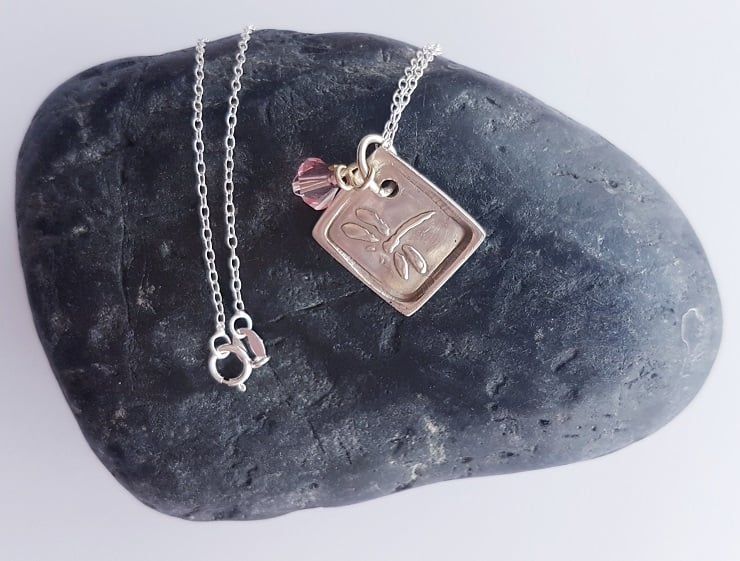18" Sterling Silver Fine Chain with Fine Silver Dragonfly Pendant with lovely pink Swarovski crystal. Pendant measures approx 1.5cm x 1.25cm