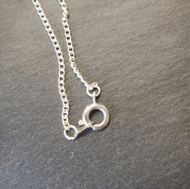 Approx dimensions of mandala is 5cm plus a further 1cm with the bail. Comes with an 18 inch chain with bolt ring fastening.
