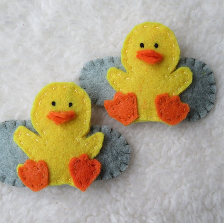 Cute duck hair clips, perfect for those toddlers who, like me, love to feed the ducks down at the local duck pond.