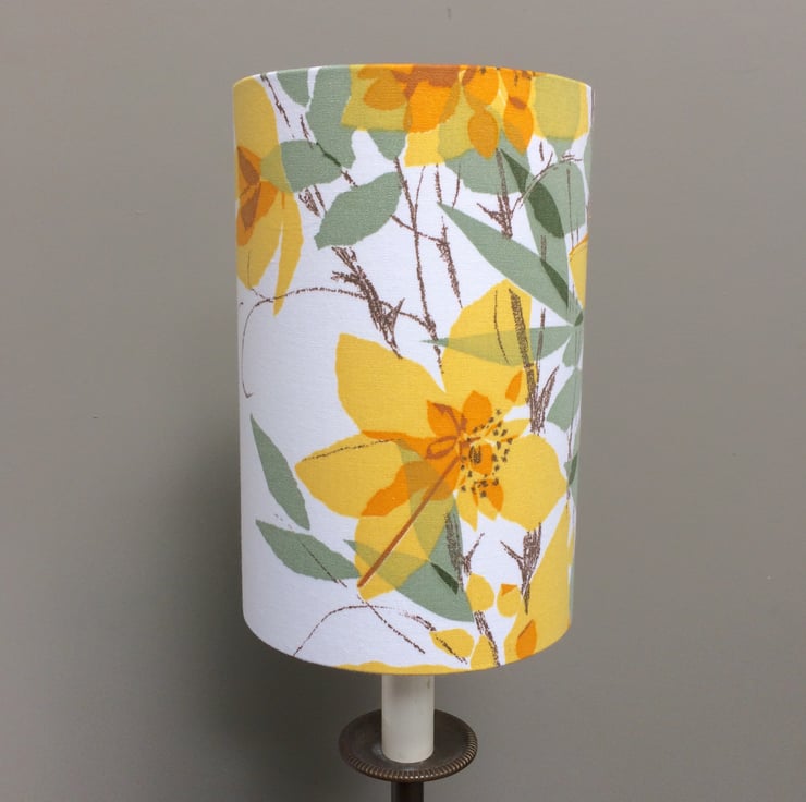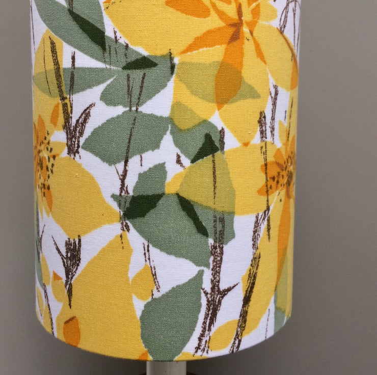 Summer Yellow Flower Cotillion Jonelle Cotillion 60s Vintage fabric Lampshade