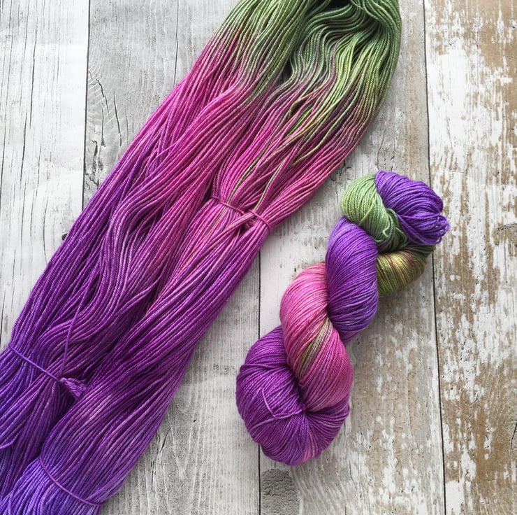 Gorgeous merino and mulberry silk 70/30 4ly yarn approx 400m, dyed in rich shades as shown.