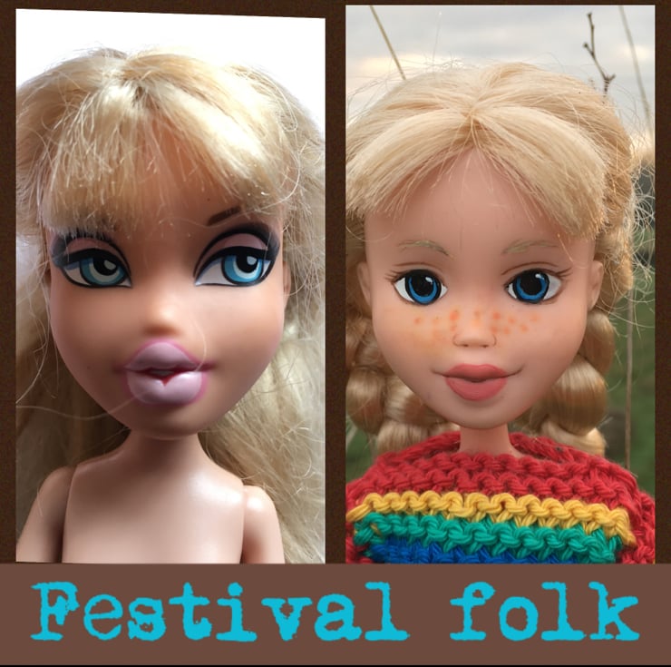 Joy is a hand-painted makeunder doll designed to encourage imaginative play. She was a second-hand bratz doll who has been given a new lease on life as a unique, age-appropriate Festival folk doll. Joy has has beautiful blue eyes and long brown hair perfect for styling.