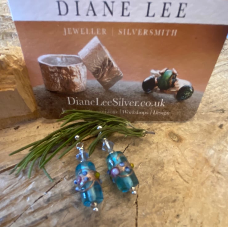 It's stopped raining, and outside is full of golden light, the garden is blooming and the blooms bright, so inspiration struck and I have been making flower jewellery. The beautiful beads have little pink roses and golden threads, pink gives the flowers warmth, whilst the silver post and backing disc is gentle on even the most sensitive skin.