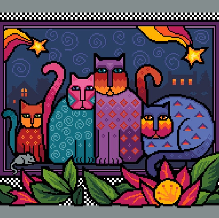 Cross Stitch Pattern 084 - Midnight Moggies - Colourful Cats Series cross stitch/tapestry Instant PDF download chart by Vivsters. No delivery costs - PDF file straight to your inbox. Start stitching straight today!