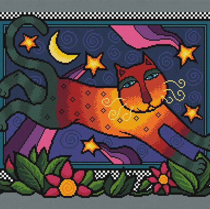 Colourful Cats Series - Colourful Night Cat cross stitch/tapestry chart by Vivienne Powers. Also appeared in Cross Stitch Gold Magazine.