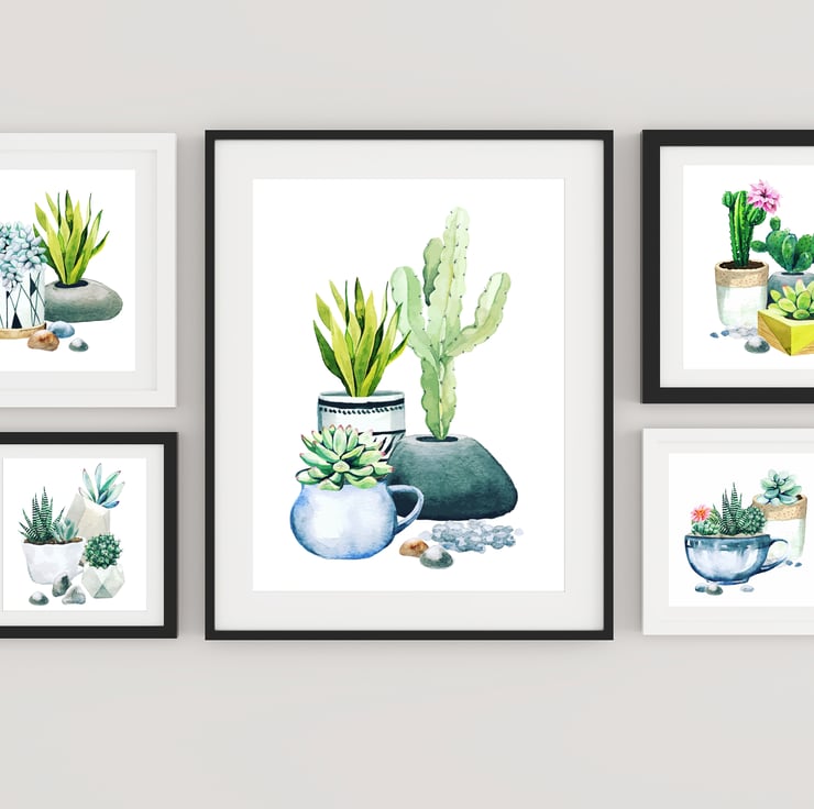 Watercolour Cactus wall prints, Cactus wall decor, Cactus wall art