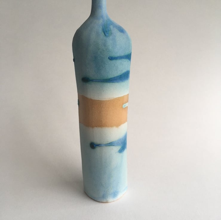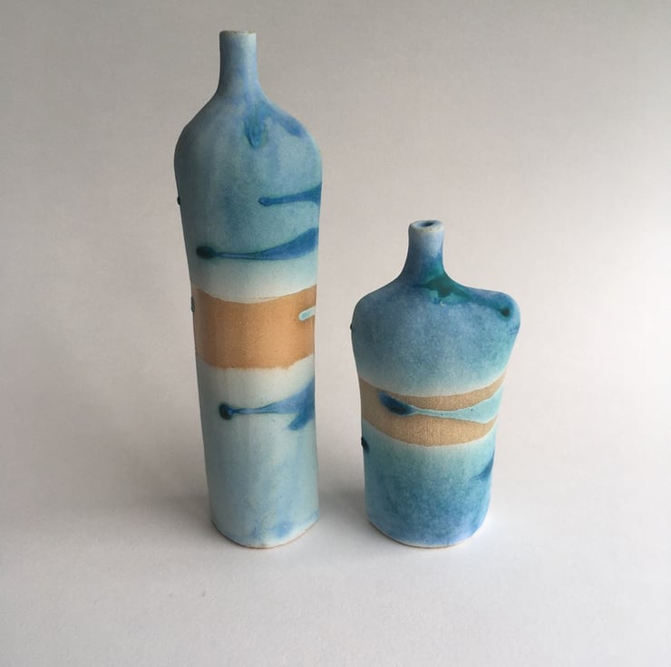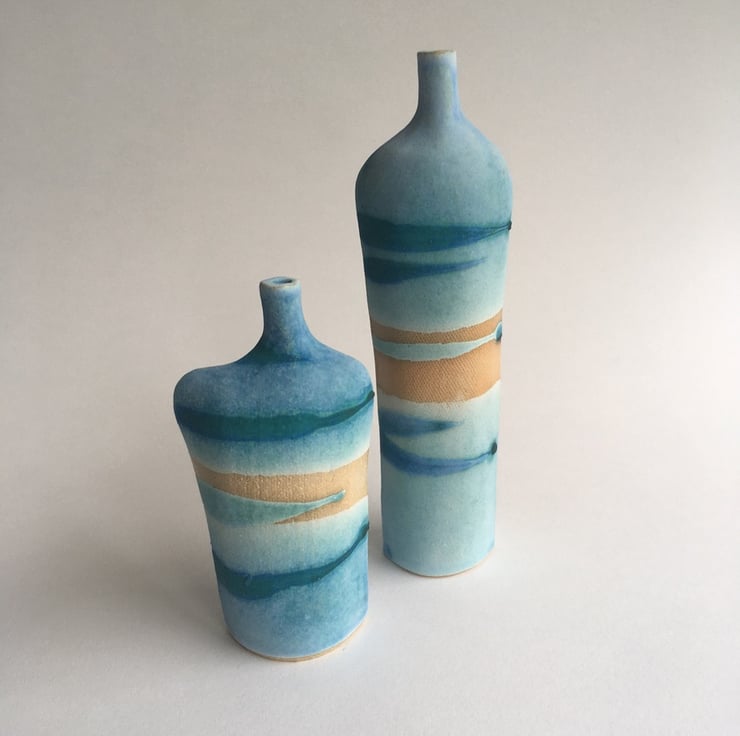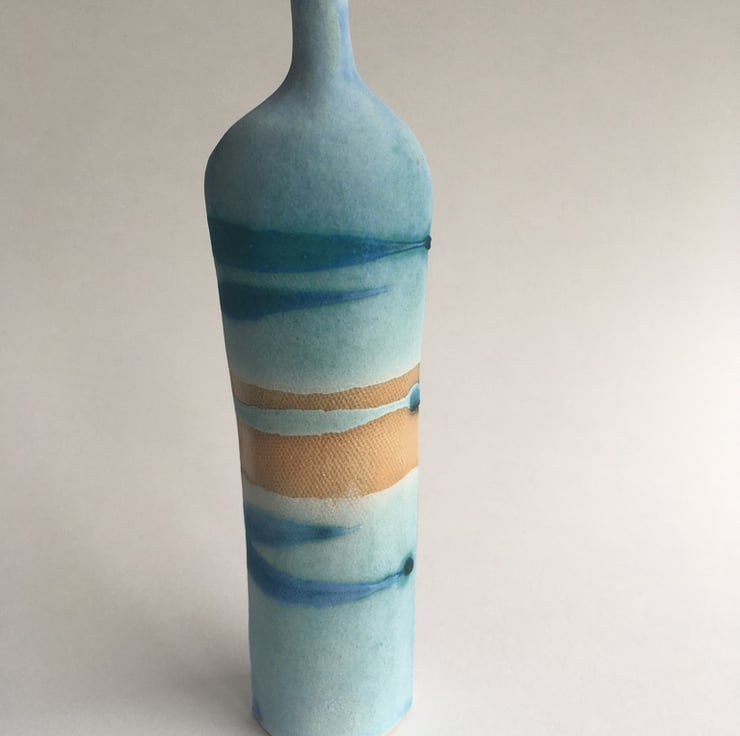 The bottles I make have a figurative form overlaid with glazes that evoke shorelines and landscapes.