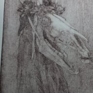This little print is part of a series of paintings and prints exploring old customs and folklore of Britain, rendered in a slightly spooky folk-horror way.