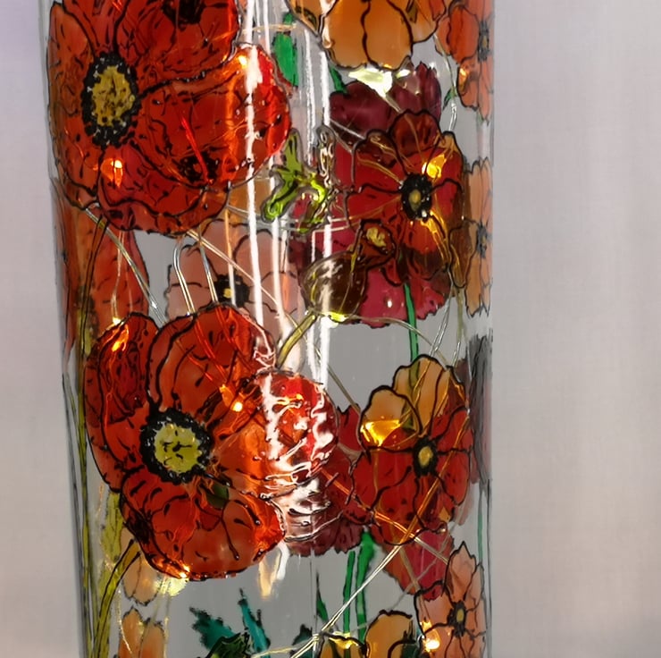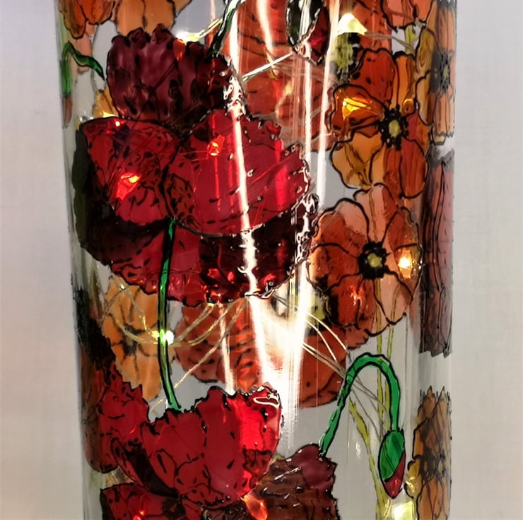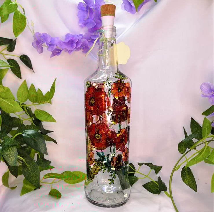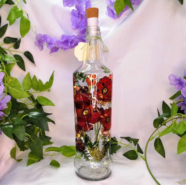 Elegant shaped bottle with a riot of poppies and leaves, with a few small 3D butterflies. Height 310mm approx.