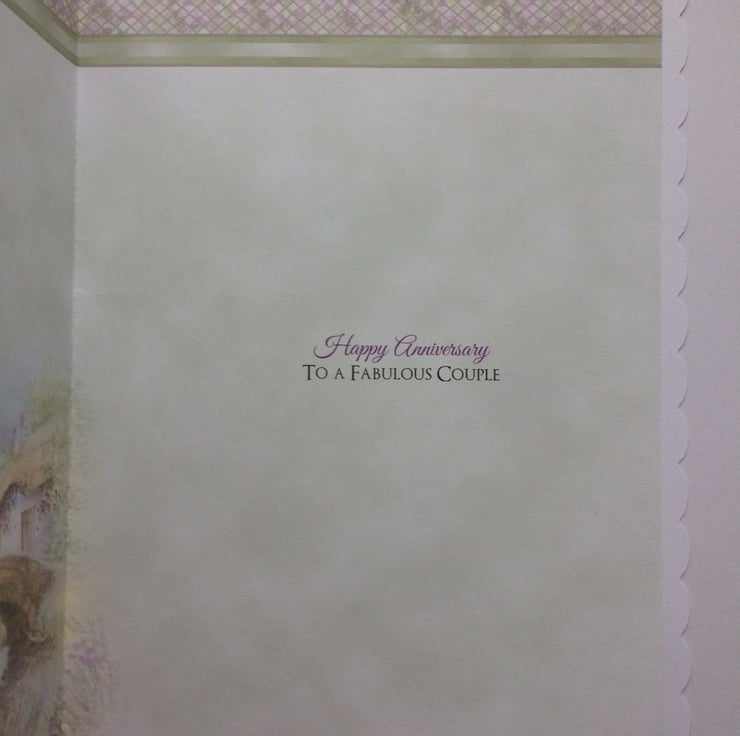 The card has a matching full colour double insert on the inside with the greeting "Happy Anniversary to a Fabulous Couple" and there is plenty of room for you to write your own special message.
