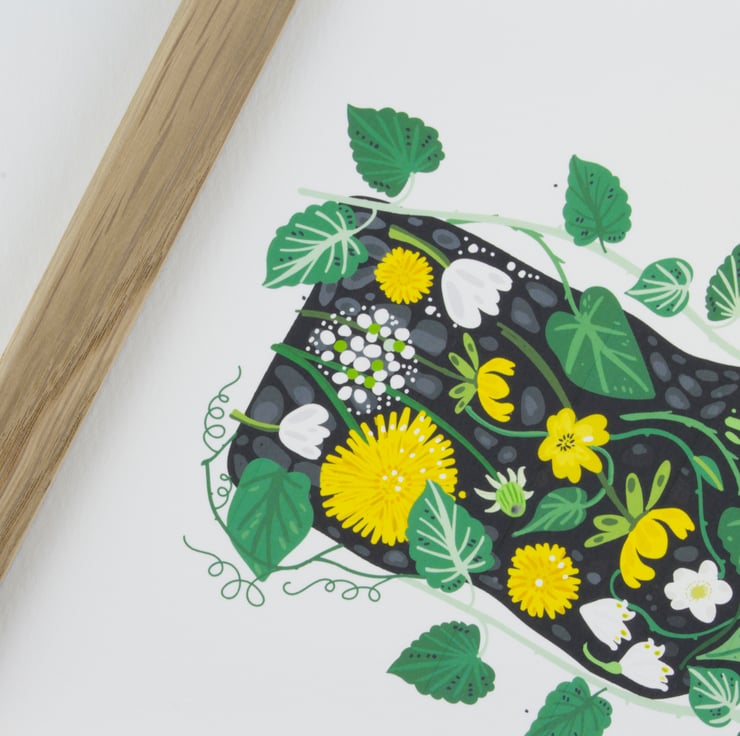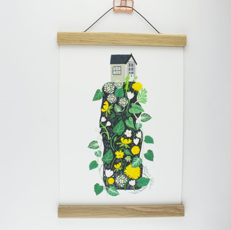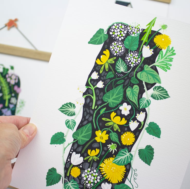 A4 illustration of dandelions and a little Yorkshire shed, printed on Giclee quality water colour paper, using archival inks that are highly resistant to fading. The illustration is part of a collection I have illustrated from the lovely walks I took around our local rivers and moorland in Skipton. Dandelions are such a beautiful flower in Spring, and this print shows them in all their seasonal glory.