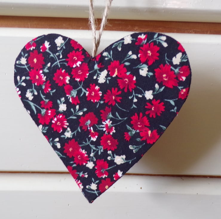 Decorative heart. Measuring approx. 13x13cm, the heart is reversible and has a card inner to make it sturdy. It looks really pretty hanging on a wall, wardrobe handle, cupboard handle on a door or to use as a decoration on a gift to your loved one, the choice is yours.