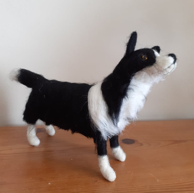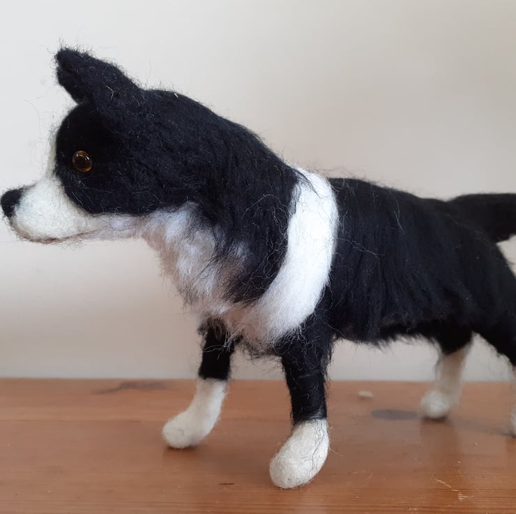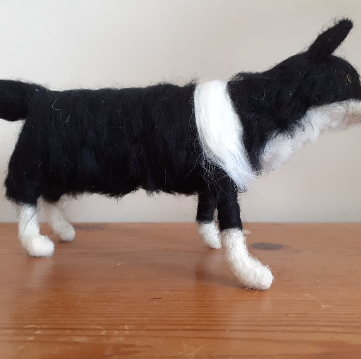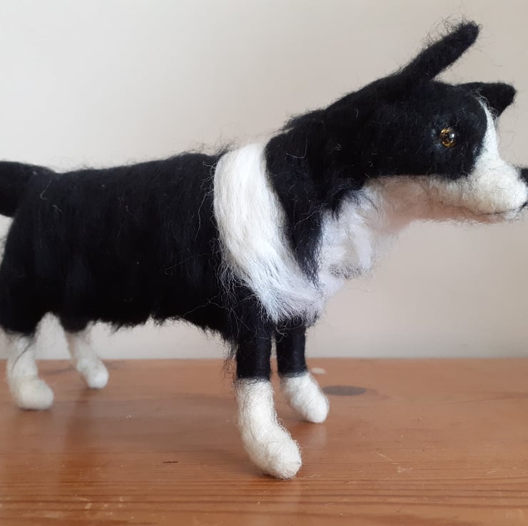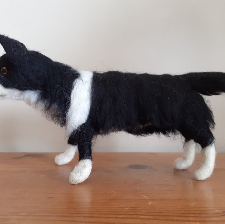 All wool,needle felted on a wire armature which is secured to a varnished birch wood log.