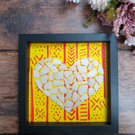 A tender moment captured in genuine sea glass, sea pottery and shells. This sweet little artwork tells a story of friendship and joy. Each piece has been carefully chosen and hand arranged to create a girl and her faithful dog beneath a wide, hopeful sky.